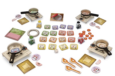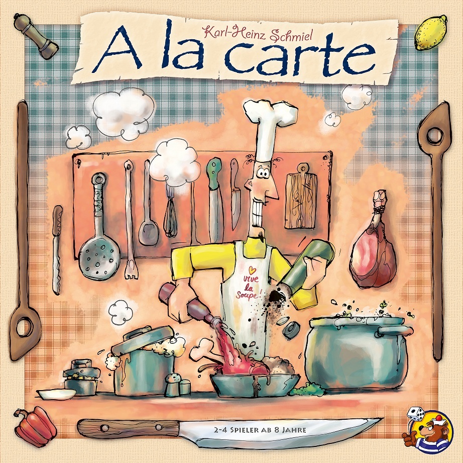 An die Töpfe, fertig, los! Als angehende Sterneköche versuchen die Spieler möglichst viele der außergewöhnlichen Gerichte fehlerfrei von der Pfanne auf den Teller zu bekommen. Dazu sind nicht nur die korrekten Zutaten notwendig, sondern auch die richtige Temperatur des Herds. Doch aufgepasst! Schnell ist das Gericht überwürzt oder ein Mitspieler hat einem gehörig die Suppe versalzen! In diesem Geschicklichkeitsspiel von Heidelbär Games versuchen die Spieler reihum eines der verschieden schwierigen Rezepte nachzukochen. Auf kleinen Kärtchen, die in einer echter Miniatur-Pfanne platziert werden, steht, welche Gewürze für das Gericht nötig sind und welcher Hitzegrad am Herd eingestellt werden muss, damit die Mahlzeit servierbereit ist. Drei Aktionen stehen dem Spieler pro Runde zur Verfügung, die man beliebig zum Heizen oder Würzen verwenden darf. Geheizt wird per Würfelwurf. Da geht die Temperatur schnell mal über das gewünschte Maß hinaus und lässt sich höchstens in einer Kaffeepause wieder nach unten regulieren. Gewürzt wird, indem man versucht, genau die richtige Menge des passenden Gewürzes (in Form von kleinen Spielsteinchen, die sich in einem echten Miniatur-Streuer befinden) mit einer geschicken Bewegung aus dem Streuer zu schütten. Das klappt mal besser – oder geht auch mal völlig in die Hose. Dann muss das Gericht in die Mülltonne. Sind alle Bedingungen des Rezepts erfüllt, darf serviert werden – was am Ende dann Siegpunkte einbringt. Stimmen die Zutaten sogar 100 %ig, dann bekommt der Koch einen Stern für das Gericht. Auch so kann man das Spiel gewinnen. Wer mutig genug ist, kann sich auch an einen Crêpe wagen. Diese Karte muss man in der Pfanne wenden – was sich aber gar nicht als so einfach erweist… „A la carte“ war 2010 u. a. zum Spiel des Jahres nominiert und ist seit 2019 im Reprint erhältlich. Für zusätzlichen Spielspaß ist die Erweiterung „A la carte: Dessert“ sehr empfehlenswert. Sie beinhaltet nicht nur das Spielmaterial für einen fünften Spieler beinhaltet, sondern auch neue Salzgerichte (ja, hier braucht man wirklich Salz!), neue Kaffeepausen-Kärtchen und einen gemischten Gewürzstreuer. Besonders die neuen Menükarten bringen noch etwas mehr Pep ins Spiel. Jede Menükarte beinhaltet eine spezielle Herausforderung, die der Spielende bis Ende des Spiels erreichen muss. Gelingt dies, gibt es Extrapunkte! (mk)