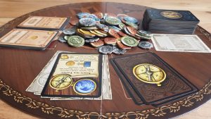 It’s a kind of magic! Der Name Richard Garfield sollte jedem, der sich in der Szene auskennt ein Begriff sein: Der Erfinder von Magic: The Gathering. Mit Carnival of Monsters begibt man sich zurück zu den Wurzeln, erhält jedoch eine etwas andere Art an Kartenspiel, doch nun von Vorne. Carnival of Monsters versetzt uns ins mystifizierte viktorianische Zeitalter. Wir sind MonsterexpertInnen und möchten Mitglied der ‚Könliglichen Monstrologischen Gesellschaft‘ werden. Dafür haben wir vier Saisons Zeit um Monster zu fangen und zu bändigen. Die Spielmechanik hierzu ist denkbar einfach. Jeder Spielende zieht 8 Karten, wählt eine aus und gibt den Rest weiter. Die auserkorene Karte kann entweder direkt gespielt oder für später zurückgelegt werden, was ein bisschen Geld kostet. Sind alle 8 Karten ausgespielt bzw. reserviert, ist die Saison zu Ende und es werden Rundenboni vergeben, es müssen eventuell gefangene und gefährliche Monster gebändigt werden, danach geht es in die neue Saison. Wie werden Karten gespielt? Relativ simpel. Landkarten können direkt verwendet werden und sind vergleichbar mit dem Mana aus Magic. Diese Landpunkte können für Monsterkarten, die Siegpunkte bringen, verbraucht werden. Weitere Ereigniskarten werden direkt verwertet. Zusätzlich gibt es Rundenende-Bonuskarten, die aufgehoben werden müssen. Einer der Clous im Spiel ist, dass jede Münze, die man verbraucht auch einen Siegpunkt wert ist. So wird das Karten reservieren immer schmerzhaft, das Geld knapp und starke Monster um so wichtiger. Allerdings sind letztere schwieriger zu bändigen und kosten am Ende unter Umständen viel Geld beim Zähmen. Denkt man jetzt, das Spiel hätte keine Interaktion, so versteht man nach den ersten paar Runden schnell, dass es auch wichtig ist, GegnerInnen Karten wegzunehmen oder sich selbst zunächst unnötige Karten zu reservieren, damit andere keine Boni einstreichen können. Insgesamt ist Carnival of Monsters ein kurzes und knackiges Spiel mit 30-45 Minuten Spielzeit, das man schnell lernt und zwischendurch zügig auspacken und spielen kann. Die schöne Gestaltung der Monster und des Spielplans sorgen für eine stilvolle Atmosphäre. Allerdings könnte der Langzeitspaß leiden, da schon nach 2-3 Runden alle wundervoll gestalteten Karten bekannt sind. Zwar ist jedes Spiel durch das Mischen aller Karten immer anders, doch kommt man schnell hinter die Spielmechanismen und optimiert diese. Eine bereits erschienene Erweiterung könnte dem Abhilfe verschaffen. (mat)