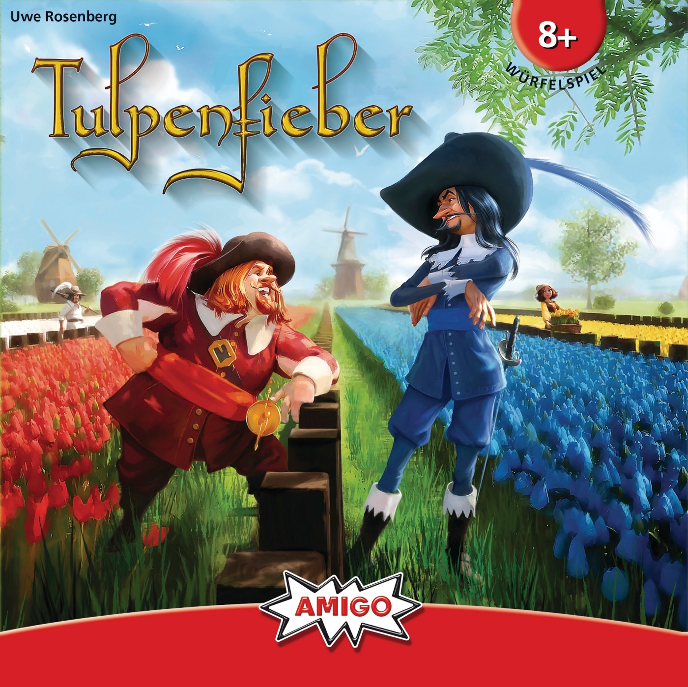 Der bekannte und renommierte Autor Uwe Rosenberg („Arler Erde“, „Agricola“, „Ein Fest für Odin“) hat mit „Tulpenfieber“ ein kleines, familientaugliches Würfelspiel entworfen. Dessen Spielprinzip ist an Klassiker wie „Kniffel“ oder „Yahtzee“ angelehnt. Wie dort, muss auch in „Tulpenfieber“ mit einer bestimmten Anzahl von Würfeln bestimmte Ergebnisse erzielt werden. Schafft man dies, dürfen dort Tulpen platziert werden. Der Clou hier: wer seine Blumen geschickt platziert, erhält für seine nachfolgenden Züge zusätzliche Würfel oder bekommt sogar die Gelegenheit einzelne Würfel auf sein Wunschergebnis zu drehen – was die Chancen erhöht, Tulpen in einer der letzten beiden Reihen zu platzieren – wo sich besonders schwierige Ziele befinden. Denn nur wer zuerst alle Felder der vierten Reihe oder drei benachbarte (bzw. vier beliebige) Felder der fünften Tulpenreihe belegt hat, gewinnt das Spiel. Während das Artwork von außen noch recht nett daherkommt, fehlt beim Spielmaterial im inneren etwas Liebe. Mehr als bunte Flecken sind bei den Tulpen leider kaum zu erkennen – wobei die Farbe ja keine Rolle spielt. „Tulpenfieber“ ist also am Ende ein „aufgebohrtes“ Kniffel – was nicht negativ gemeint ist. Denn als Alternative und kleines Würfelspiel für zwischendurch spielt sich die Amigo-Neuheit wirklich ganz flüssig und nett.