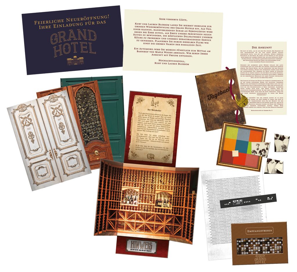 Das sagenumwobene Grand Hotel öffnet endlich wieder seine Türen und wir sind Ehrengäste auf der Einweihungsfeier. Doch irgendetwas ist merkwürdig. War es dieser Blick der Frau? Vielleicht lässt sich dazu ja noch im Laufe der Zeit etwas herausfinden... So baut sich die Story um das Grand Hotel auf und man wird sofort in die Geschichte gezogen, was die große Stärke der Moses Escape-Room-Spiele ist. Der physische Aspekt kommt aber auch nicht zu kurz, da Rätselelemente hochwertig produziert sind und für Abwechslung sorgen. Das Spiel ist gesamt mit seinem Raumaufbau sehr schön gestaltet. Allerdings ist es wiederum gerade deswegen schade, dass die Bilder und Räume selbst nur wenig für die Rätsel benutzt werden. So schaut man sich kurz den Raum an und lässt ihn dann wortwörtlich links liegen. Trotzdem ist die Atmosphäre im Spiel toll, solange man natürlich die konstruierten Gründe für die einzelnen Räume, in denen man eingesperrt ist, ignoriert. Damit ist Grand Hotel ähnlich spaßig wie das erste Escape-Room-Spiel: Das Geheimnis von Holborn Hall. Der Schwierigkeitsgrad ist allerdings deutlich geringer. Damit ist Grand Hotel durchaus für EinsteigerInnen und Familien geeignet. Fernab davon sollte noch erwähnt sein, dass viele Rätsel doppelt als Material vorliegen, sodass gleichzeitig mehrere Spielende rätseln können! Um Spoiler zu vermeiden, werden hier nur die offiziellen Bilder von moses-verlag.de verwendet.