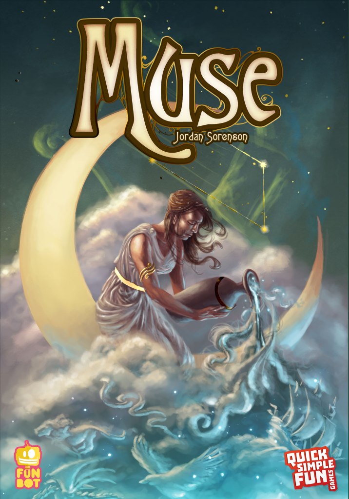 In „Muse“ müssen die SpielerInnen eines Teams aus einer vorliegenden Auswahl an Karten eine bestimmte Karte finden. Der einzige Hinweis (eine sogenannte „Inspiration“) zu dieser Karte kommt von der zuvor ausgewählten „Muse“ der Gruppe. Dies kann z.B. ein Geräusch, eine Geste oder ein einzelner Begriff sein. Klingt einfach? Nee, nee! Sowohl die Karte, als auch die Inspiration werden nämlich vom gegnerischen Team ausgewählt, die sich mit Sicherheit für eine möglichst knifflig zu lösende Kombination entscheidet. Oder welchen Tipp gibt man seinem Team zum gefährlich aussehenden Roboter, wenn die Inspiration „Nenne ein Lebensmittel“ lautet? Dank der fantasievollen Motive (aus den Federn von Andre Garcia, Apolline Etienne und Kristen Plescow) bleibt aber immer genug Interpretationsspielraum zur Verfügung, so dass dabei ein echt launiger Ratespaß entsteht. Welches Team zuerst fünf Motive richtig erraten hat, gewinnt das Spiel. „Muse“ bewegt sich offensichtlich im Fahrwasser von „Dixit“ oder „Mysterium“. Es kann zwar nicht mit der Komplexität der größeren Brüder und Schwestern mithalten, punktet aber immer dann, wenn es mal etwas schneller gehen muss (und ist dabei nicht weniger spaßig!). Die Spielanleitung passt auf einen A5-Bogen und ist in zwei Minuten erklärt. Wer es noch schneller will, greift auf die beiliegenden Schnellspielregeln zurück. Auch in Punkto Artwork und Spielmaterial braucht sich „Muse“ nicht hinter den großen Produktionen verstecken. Das ganze Spiel wurde mit viel Liebe und Qualität bedacht. Wundervolle Motive, hochwertiges Material und ein edler Karton mit toller Haptik (selbst der Anleitungsbogen wurde mit Golddruck versehen!). Um die Teams gut zu besetzen, empfehlen wir mindestens vier SpielerInnen. Doch auch mit den Spielregeln für weniger als vier Spieler macht „Muse“ Spaß! Die Erweiterung „Muse: Das Erwachen“ ist bereits verfügbar, die zweite Ergänzung „Muse: Renaissance“ ab Ende April 2022 lieferbar – diese werden wir in Zukunft auf jeden Fall für euch testen.