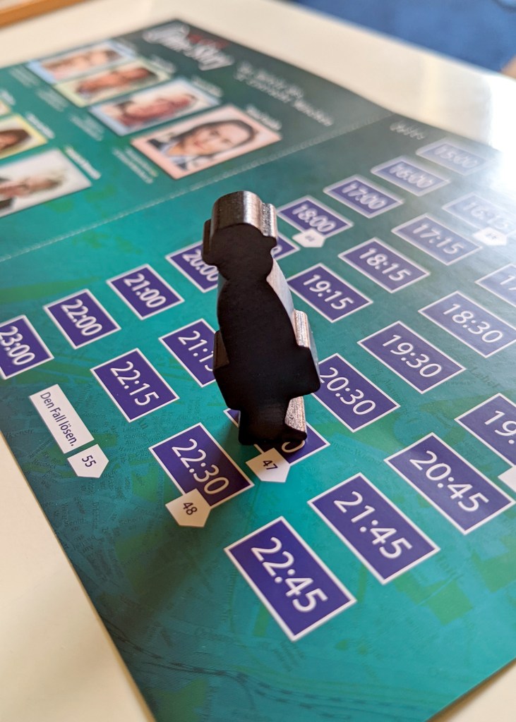 Es geht um den Aufstieg in die 1. Bundesliga. Einen Tag vor dem entscheidenden Spiel des SC Eintracht München werden mehrere Spieler der Mannschaft mit Verdacht auf eine Lebensmittelvergiftung in Krankenhaus eingeliefert. Um herauszufinden, was hier wirklich passiert ist und wer hinter diesem möglichen Anschlag stecken könnte, werden wir als Ermittler auf den Fall angesetzt. Da der Fall bis abends gelöst sein muss, gilt es keine Zeit zu verlieren und möglichst vielen Hinweisen nachzugehen... Aus dem anfänglich großen Kartenstapel werden nach und nach Karten aufgedeckt, die zum einen die Story rund um den Fußballverein weiter voranbringen und zum anderen den Mitspielenden ermöglichen, verschiedenen (teils zeitlich begrenzten) Spuren nachzugehen. Doch jede Spur benötigt auch Zeit (die die Ermittler-Figur auf einer Zeitleiste nach vorne bewegt) und es gilt gut abzuwägen, welche davon verfolgt werden soll. Das viel Interaktion erfordernde, gemeinsame Rätseln und Grübeln macht Spaß und bietet eine interessante Alternative zu den klassischen Escape-Kartenspielen, bei denen Rätsel und Denkspiele im Fokus stehen. In die realitätsnahe Story kann man von Anfang an sehr gut eintauchen und die nacheinander gefundenen Hinweise treiben die Spekulationen und Vermutungen immer weiter voran. Die Menge an Informationen ist (bis auf einige, wenige Momente, in denen wirklich sehr viele mögliche Spuren verfolgbar waren) gut überschaubar und erfordert kein fotografisches Gedächtnis, um am Ball zu bleiben. So ist „Crime Story - Munich“ durchaus auch für aufgeweckte Kids (ab ca. 12 Jahren) spielbar. In der Reihe der „Crime Story“ gibt es auch Fälle in Berlin, London, Wien und Stockholm – die wir bestimmt ebenfalls noch für euch testen werden!