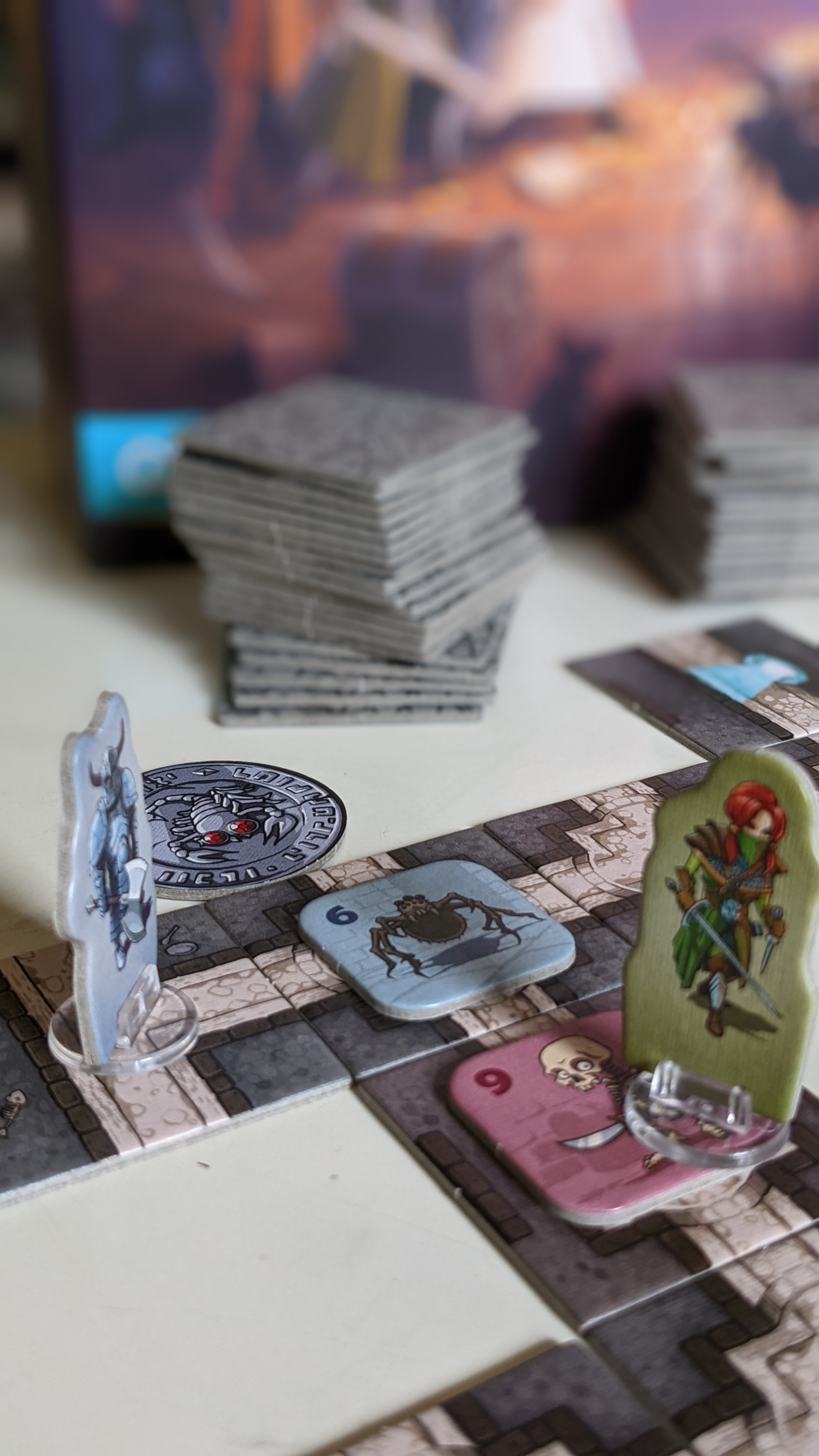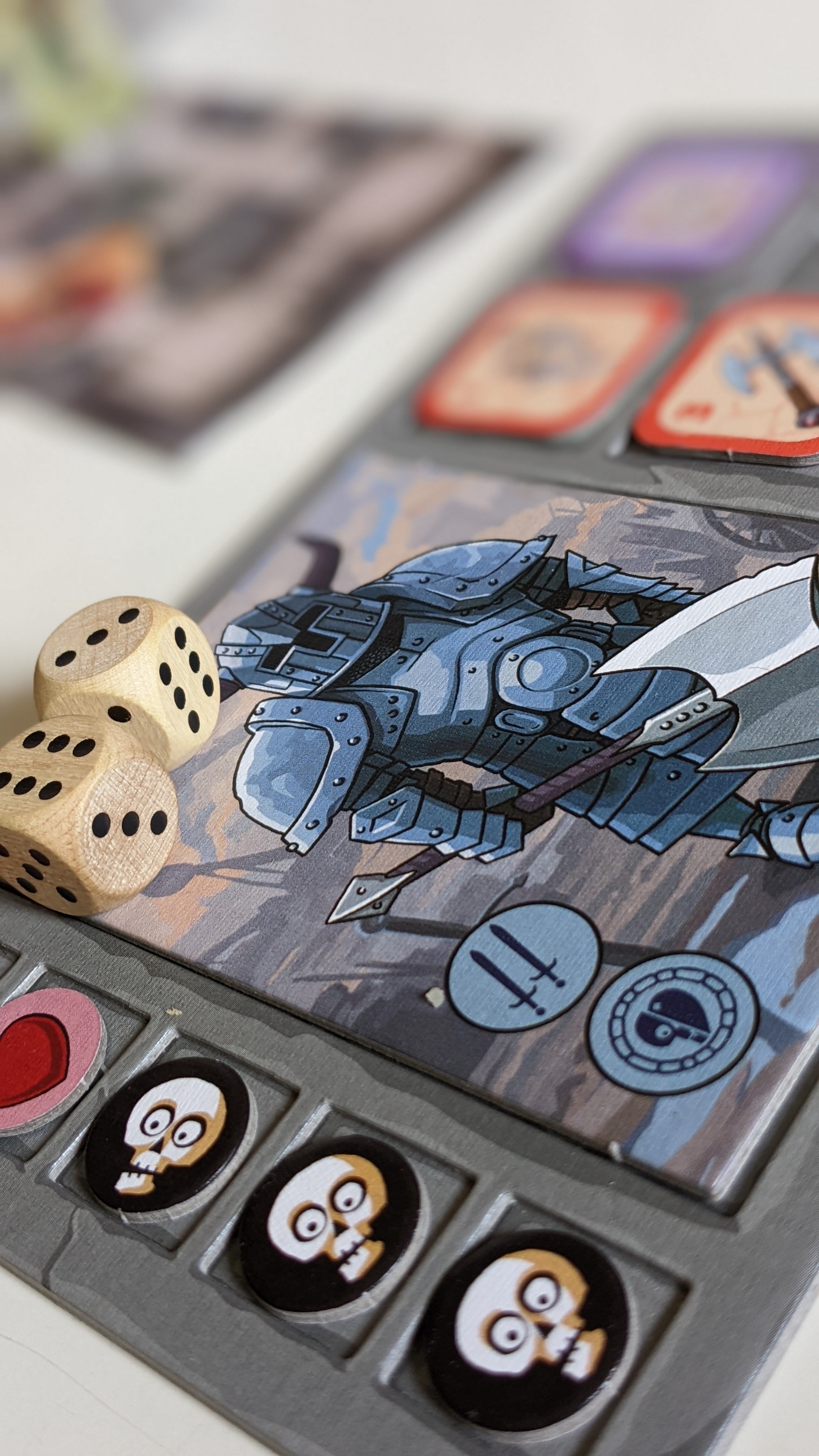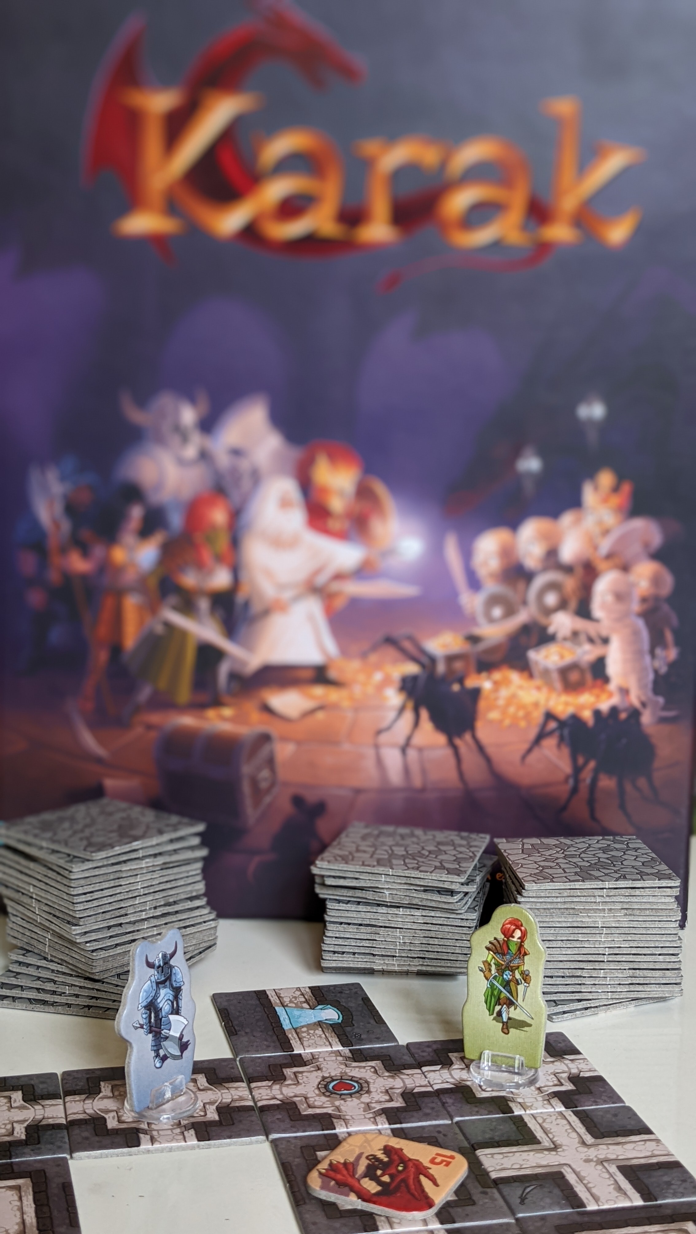 Der vielleicht beste Dungeon-Crawler für kleine (und große) Helden! Unter den Gemäuern der verfallenen Burg Karak liegen tief vergrabene Geheimnisse. Eine Gruppe wagemutiger Abenteurer steigt in die Katakomben der Ruine hinab und macht sich auf die Suche nach einem sagenumwobenen Goldschatz… Der Dungeon-Crawler von Albi (wurde Ende 2021 von Kosmos neu aufgelegt) besticht durch ein schlankes, einfaches Regelwerk, das unmittelbar ins Geschehen eintauchen lässt: Einen von sechs Held:innen auswählen, Lebenspunkte auffüllen und los geht´s! Mit vier möglichen Zügen geht man Schritt für Schritt durch die jedes Mal neu zusammensetzbaren Gänge. In jedem aufgedeckten Raum lauert ein Monster, das umgehend bekämpft werden muss. Zwei Würfel entscheiden über Sieg oder Niederlage. Sind manche Gegner anfangs noch schwer zu besiegen, wird dies im Laufe der Partie immer einfacher, denn mit Zaubersprüchen und Waffen ausgestattet fegt man die Monster irgendwann locker vom Spieltisch, so dass der Drache am Ende des Spiels wirklich um seinen Schatz fürchten muss. Brunnen, Portale, Schatzkisten und ein lästiger Fluch bringen Abwechslung ins Spiel. Mit der Erweiterung „Regent“ kommt dann zusätzlicher Schwung in die Katakomben von „Karak“. Die dort enthaltenen neuen Helden, Monster und Räume sorgen für mehr Wettbewerb, Wettstreit und Ausgeglichenheit. „Karak“ ist ein Spiel für die ganze Familie. Unser Jüngster kann gar nicht genug von den Katakomben bekommen – ihm gefallen die Spannung, die durch das zufällige Ziehen der Monsterplättchen entsteht und die Abenteuerlust, nach dem Drachen zu suchen. Wird dieser dann noch eigenmächtig besiegt, ist die Freude riesengroß! Aber auch ältere Spieler:innen dürften sich von den niedlichen Artworks und unkomplizierten Spielabläufen schnell begeistern lassen. Wer Komplexität und ausgetüftelte Spielmechaniken sucht, ist hier jedoch falsch. „Karak“ ist und bleibt ein Familien- und Kinderspiel. Ein großes Manko der Originalversion ist die holprig übersetzte Anleitung, die für manche Spielabläufe oder Fähigkeiten der Helden große Frageziechen hinterlässt. Nur der Blick in die englische Übersetzung kann hier Abhilfe schaffen. Vielleicht hat Kosmos diese für die Neuauflage ja überarbeitet… In der „Karak“-Reihe sind neben „Regent“ auch schon die 3-Helden-Mini-Erweiterung „Sidhar, Krima, Elspeth“, Miniaturen-Sets und das eigenständige Kartenspiel „Goblin“ erschienen.