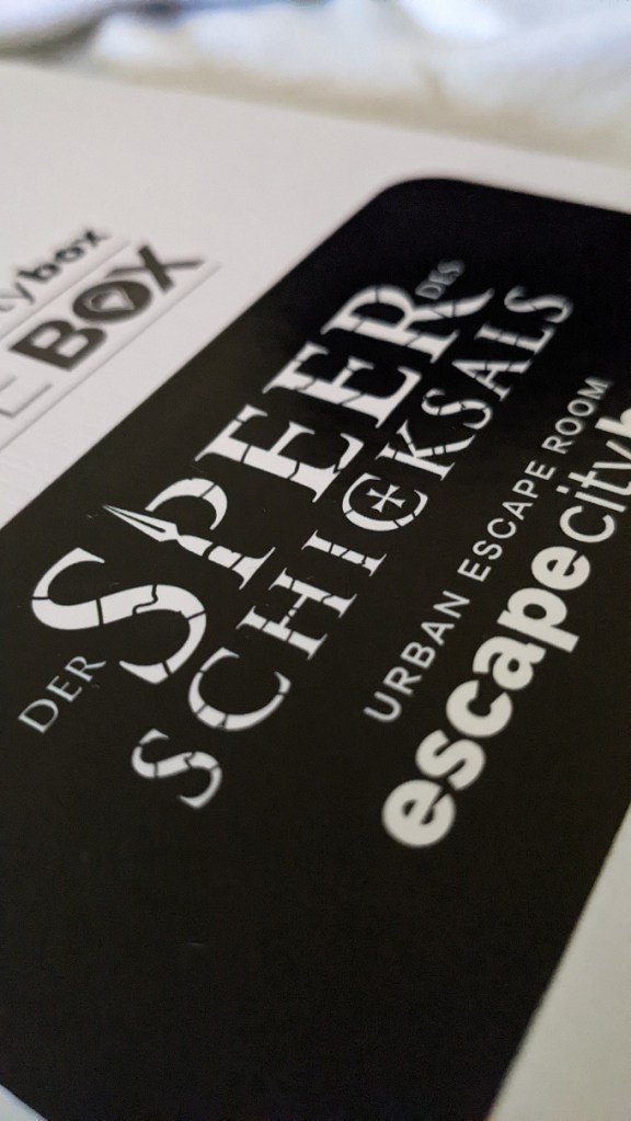 Nach dem MyCityHunt zieht es uns ein weiteres Mal nach draußen, um auf eine Outdoor-Escape-Game-Mission zu gehen. Bei „Der Speer des Schicksals“ von escape city box gibt es Hinweise darauf, dass sich der legendäre Speer in unserer Stadt befinden könnte. Als Ermittler-Team begeben wir uns auf Spurensuche. Wir sind hierzu mit der passenden App und dem Spielmaterial ausgestattet, das anfangs jedoch noch in vier verschlossenen Umschlägen versteckt ist. Per App navigieren wir uns von Ort zu Ort, um dort dann unterschiedliche Rätsel zu lösen, bei denen tatsächlich sogar die Stadt mit eingebunden wird. Nicht viel – aber immerhin! Stimmungsvolle Videos unterstützen die Schatzjagd bis zum Grande Finale (den Abspann bis ganz zum Ende anschauen!) Der Schwierigkeitsgrad ist moderat und sollte für die meisten Gelegenheitsspieler machbar sein. Zur Not gibt es jederzeit die Möglichkeit, auf Tipps zurückzugreifen. In der Summe konnte uns „Der Speer des Schicksals“ mehr begeistern als der „MyCityHunt“. Auch wenn die Storyline an manchen Stellen etwas große Sprünge macht: „Der Speer des Schicksals“ hat deutlich weniger Screentime, tolles Spielmaterial, abwechslungsreiche Rätsel, eine einfache, unkomplizierte App und lässt gut in die Geschichte eintauchen. Zwei Dinge gibt es jedoch zu kritisieren. Ein echtes Ärgernis sind die zahlreichen Übersetzungs und Rechtschreibfehler in der App und den Videos. Wenn etwa in Aschaffenburg auf das Kino Bielefeld oder einen Platz in Madrid hingewiesen wird oder sogar Lösungshinweise uneindeutig sind (Venona oder Verona?), ist das ärgerlich. Hier sollten die Entwickler unbedingt nachbessern! Insbesondere weil die Box – und das ist der zweite Kritikpunkt – mit knapp 60 Euro (nur einmal spielbar!) ganz ordentlich zu Buche schlägt! Ideal ist die Box für 3 bis 4 Spieler. Für mehr Personen wird es eng vor dem Display. Wir haben zu dritt insgesamt knapp drei Stunden benötigt und dabei etwa drei Kilometer Strecke gemacht.