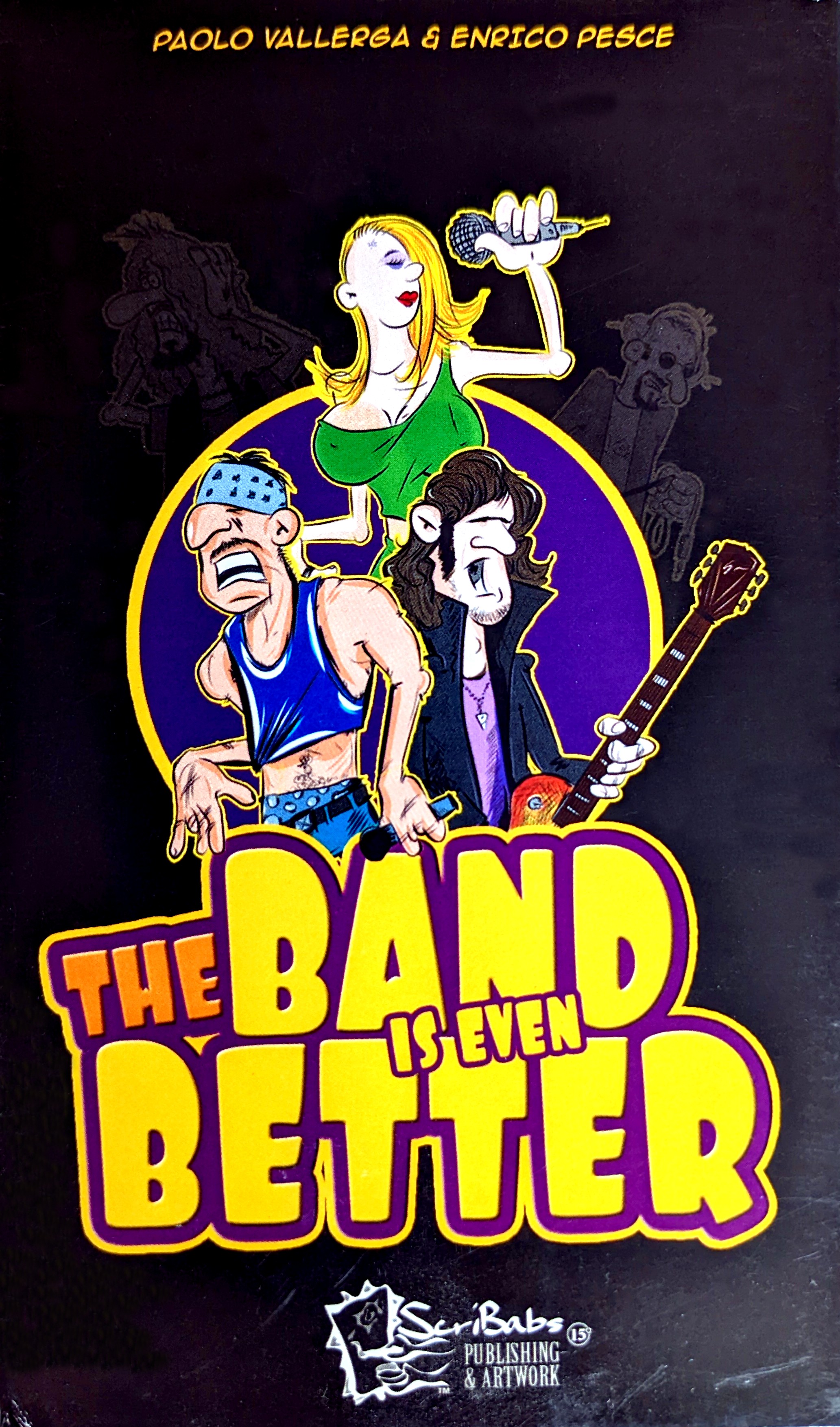 Mit "The Band Is Even Better" hat Scribabs auch ein kleines Kartenspiel im Sortiment (leider nicht in D und nur über den Italienischen Shop erhältlich). Im Spiel geht es darum, eine Rock- und Metal-Band zusammenzustellen, die von Fans und Kritikern geliebt wird. Hierzu müssen verschiedenen Bandleadern möglichst gute und passende Musiker zugewiesen werden. Welcher Spieler hinter welcher Band steht, wird jedoch erst ganz zum Schluss offenbart.