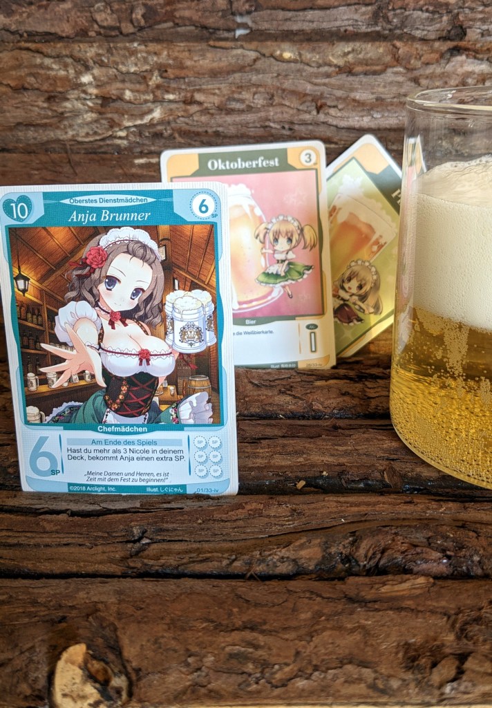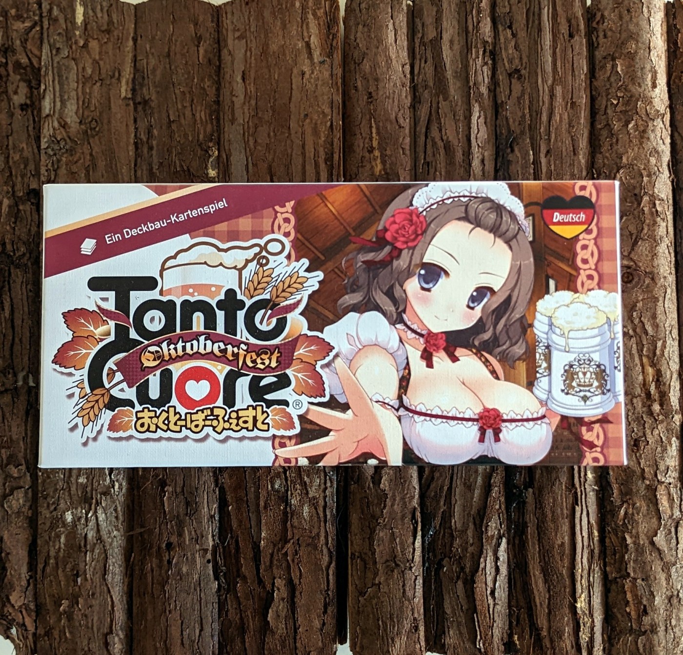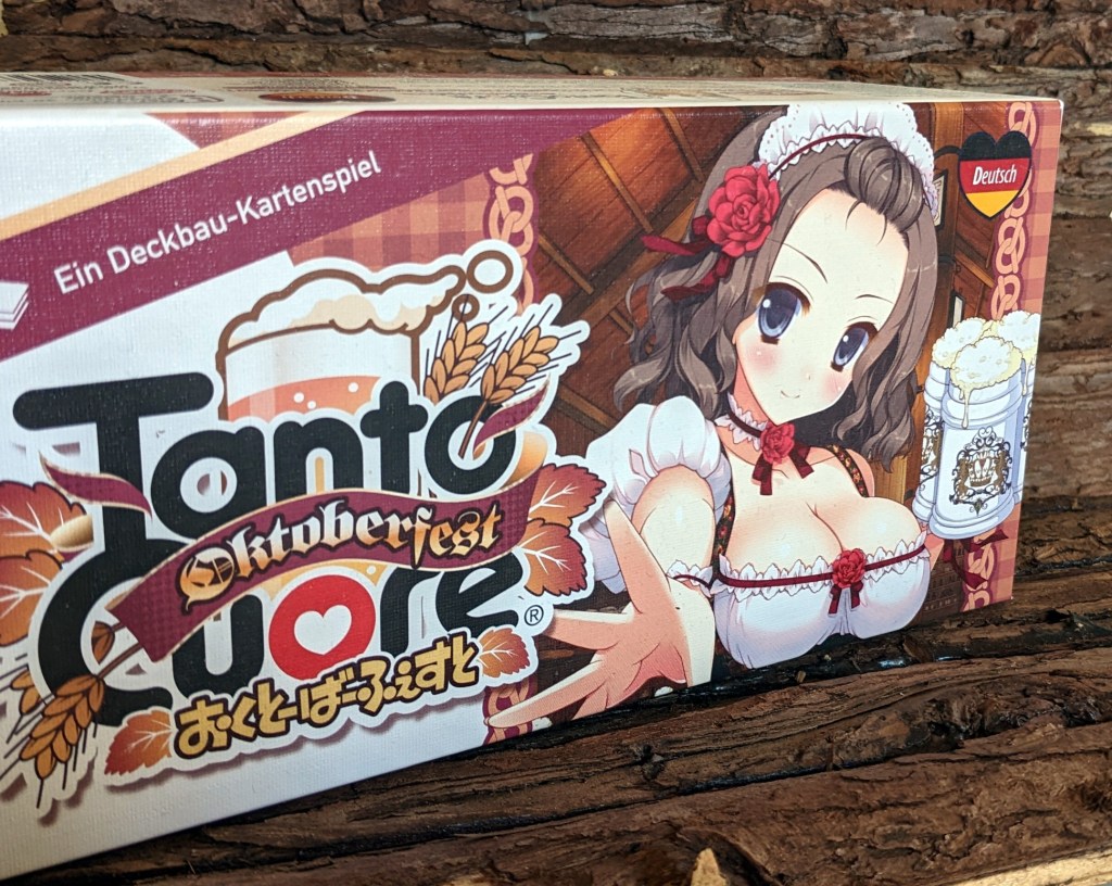 Als „Dominion“ 2009 den Preis als „Spiel des Jahres“ abstaubte, war das auch der Moment, der den Begriff „Deck-Building“ in der stetig wachsenden Spieleszene fest etablierte. Seitdem ist der tolle Mechanismus nicht mehr wegzudenken und findet in vielen Spielen Anwendung. Auch „Tanto Cuore“ von Masayuki Kudou gehört zu den klassischen Deck-Building-Spielen. Das hier besprochene „Tanto Cuore Oktoberfest“ ist eine eigenständige Fortsetzung des Originals, die aber auch mit den anderen Teilen der Reihe kombiniert werden kann. Die Mixtur aus amerikanischem Spielsystem, japanischen Manga-Artworks und Ur-deutschem Bier-Thema ist reichlich wild und setzt voraus, dass man mit (typisch japanisch) frivolen Abbildungen kein grundsätzliches Problem hat. Na dann: S Glas in'd Hand, zum Wohl mitnand! Wie unschwer zu erraten ist, führt uns das Spiel in ein Festzelt, in dem wir als „Herr des Hauses“ süße „Dienstmädchen“ beschäftigen, Bier trinken und dadurch Siegpunkte sammeln, um am Ende als „perfekter Meister“ das Spiel zu gewinnen. Wie es die meisten von „Dominion“ kennen dürften, wird ein Set verschiedener Karten in der Mitte ausgelegt (Dienstmädchen, Ereignisse, Bier,…) und jeder Spieler erhält seine Handkarten. Ganz klassisch wird nun Stück für Stück das eigene Deck optimiert, erweitert und verbessert, um die Chancen auf den Sieg zu erhöhen. „Tanto Cuore Oktoberfest“ spielt sich dabei ähnlich wie Dominion. Der größte Unterschied liegt wahrscheinlich im „Privatraum“ - ein Bereich, in den die Bierkarten gespielt werden, ohne dass sie wieder auf der Hand landen. Aber Vorsicht! Wie im wirklichen Leben gilt: Wer zuviel trinkt, der könnte es bereuen! "Alkohol, Du edler Geist, wie oft Du mich zu Boden reisst, Und reisst Du mich auch zehn Mal nieder, Ich steh auf, und saufe wieder." Auch wenn manche Übersetzungen etwas ungelenk und falsch wirken (ich vermute, dass man der Einheitlichkeit wegen an den Begriffen und Bezeichnungen der anderen Teile festgehalten hat), kommt das Oktoberfest-Thema ziemlich gut rüber - auch dank der Bier-Karten und dem damit verbundenen Alkoholpegel. Mit den über 300 enthaltenen Karten gibt es reichlich viele Möglichkeiten, die Auslage – und damit das Spielgeschehen – zu beeinflussen. In unseren bisherigen Partien kam deshalb auch noch keine Langeweile auf. Denn auch wenn die Artworks manch einen irritieren mögen: „Tanto Cuore Oktoberfest“ ist ein gutes Deckbuilding-Spiel und für Fans des Spielprinzips eine hervorragende Alternative zu den wahrscheinlich schon längst abgegriffenen Klassikern im Schrank…