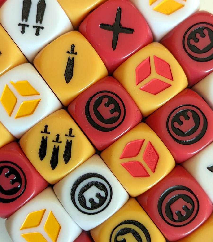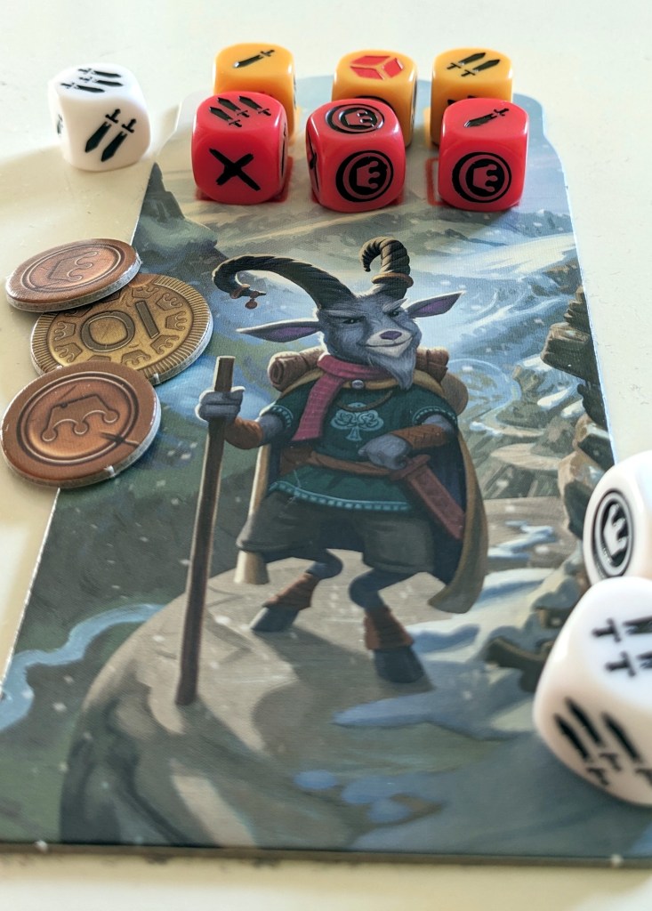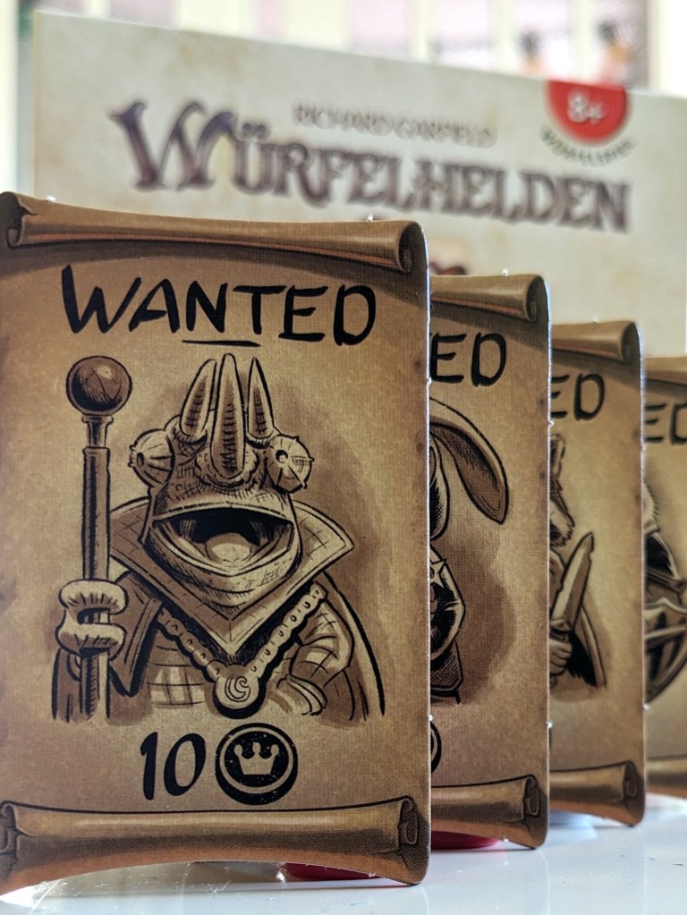 Dass Richard Garfield weiß, wie man mit Karten spielt, dürfte jedem klar sein, der schon einmal etwas von „Magic – The Gathering“ gehört hat. Bei den jüngsten Spielen des Magic-Erfinders stehen jedoch Würfel im Mittelpunkt. Zuletzt bei „Dungeons, Dice & Danger“ – und nun bei „Würfelhelden“! Jeder Mitspielende beginnt mit drei weißen Würfeln, die pro Spielzug je bis zu drei Mal gewürfelt werden können. Je nach Wurf nimmt der Held die Verfolgung eines Bösewichts auf (mit Schwert-Symbolen), erhält Münzen oder gewinnt zusätzliche (gelbe bzw. rote) Würfel dazu (die man leider auch wieder verlieren kann…). Die folgenden HeldInnen können das Ergebnis der Verfolgungsjagd nun überbieten. Gelingt dies niemandem, bis man wieder selbst an der Reihe ist, hat man den Bösewicht gefangen und wird mit Münzen dafür belohnt. Sind alle Schurken gefasst, endet das Spiel und der/die Spieler/in mit den meisten Münzen gewinnt. Für „Würfelhelden“ benötigt man etwas Glück, Wagemut und das richtige Einschätzungsvermögen. Denn nicht immer ist die Verfolgung die beste Wahl… „Würfelhelden“ ist schnell gelernt, einfach gespielt und dadurch für fast jede Spielrunde geeignet. Der Wettbewerbscharakter und das dazugehörige Würfelglück bringen viel Spannung und Action in die Partien – die allerdings nach einiger Zeit immer sehr ähnlich verlaufen. Etwas mehr Varianz (z.B. durch unterschiedliche Verfolgungsbedingungen, je nach Schurke) wäre für einen langfristigen Spielspaß hilfreich gewesen. Schade auch, dass man der kleinen, aber feinen Story rund um das Königreich Therion und den Helden nicht noch etwas mehr Leben eingehaucht hat. Alle Helden spielen sich gleich. Bis auf das Bild und einen kleinen Text gibt es keinen Unterschied. Wäre doch schön gewesen, wenn sich Otter, Falken, Steinböcken und Bären zumindest ein kleines bisschen unterscheiden würden… So schreit „Würfelhelden“ laut nach einer Erweiterung, die dem Spiel etwas mehr Komplexität und Tiefe verleiht Doch bei aller Kritik: Speziell mit jüngeren oder „Wenig-Spielern“ spielt sich „Würfelhelden“ dank der einfachen Regeln und kurzen Spieldauer sehr flott und macht Spaß!