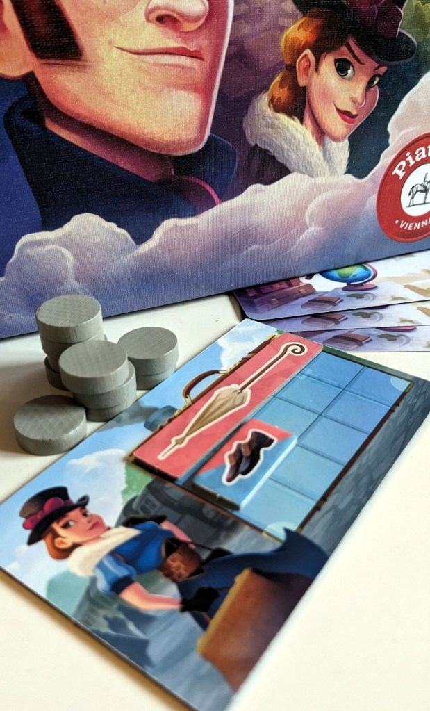Anfang der Neunziger gab es unter dem Titel „Um die Welt mit Willy Fog“ eine süße Zeichentrick-Serie, die auf Tele 5 ausgestrahlt wurde. Darin wurde die „Reise um die Erde in 80 Tagen“ von Jules Verne mit Tieren in den Hauptrollen kindertauglich auf die Fernsehgeräte gebracht und stellte meinen ersten Berührungspunkt mit dem Roman von 1873 dar. So weckt das ebenfalls auf diesem Roman aufbauende „80 Days“ natürlich direkt nostalgische Gefühle bei mir – auch wenn die Umsetzung ganz anders ausfällt. Jeder Mitspielende schlüpft in die Rolle eines von acht Reisenden (in diesem Fall aber keine Tiere, sondern sehr schön diverser Charaktere), erhält einen Koffer und etwas Geld, um die Reise in London zu beginnen. In fünf Zeitabschnitten gilt es nun Streckenabschnitte zurückzulegen, um nach 80 Tagen wieder in der britischen Hauptstadt anzukommen. Dabei gilt es nicht nur sparsam mit dem Geld umzugehen (weil die Kosten für Bahn, Schiff oder Ballon fortwährend steigen), sondern auch verschiedene Aufgaben zu erfüllen, für die man Ausstattungen wie Regenschirme, Schuhe oder sogar Revolver erwerben muss. Mindestens vier solcher Aufgaben oder Abenteuer müssen bewältigt werden, bevor man London erreicht, um Chancen auf den Sieg zu haben. In seiner Grundform ist „80 Days“ ein ganz klassisches, schön illustriertes Familienspiel, das für fast jede Altersklasse auf den Tisch gebracht werden kann. Durch den zweiseitigen Spielplan (mit zusätzlichen Optionen) und das ergänzende Assistenten-Modul kann das Spiel jedoch deutlich komplexer und variabler gestaltet werden, um auch routiniertere Vielspieler anzusprechen. Da Spielablauf und -mechanik letztendlich aber doch immer in sehr ähnlichen Mustern verlaufen, wird der Wiederspielwert zwangsläufig nach und nach sinken. Die rund 30,- €, die man für „80 Days“ aktuell investieren muss, sind aber mehr als fair – zumal es auch gar nicht mehr viele solcher klassischen Familien-Brettspiele gibt. Achtung: Dem Spiel liegt ein zusätzlicher, französischer Kartensatz bei. Achtet darauf, den für euch richtigen zu öffnen und nicht beide zu vermischen, wie es uns passiert ist… 😊