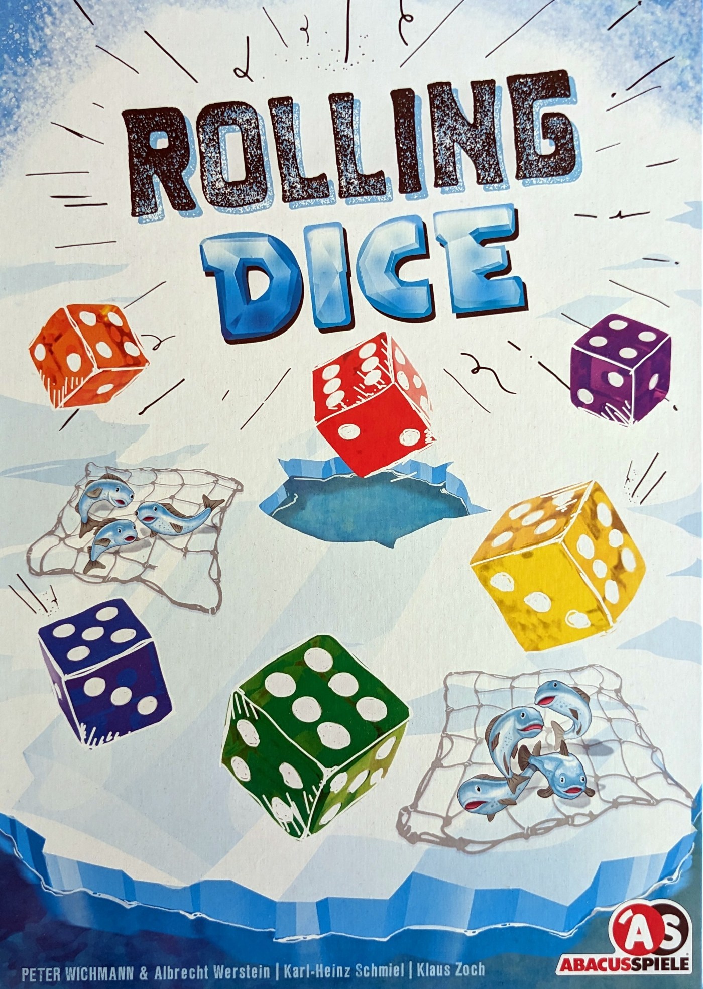 In „Rolling Dice“ müsst ihr eure vier Würfel so geschickt wie möglich auf das Eis (Spielbrett) werfen, um so möglichst viele Punkte zu erzielen. In der ersten Runde werfen alle Mitspielenden alle vier Würfel auf das Spielfeld und lassen einen davon auf dem Spielfeld liegen. Wer am weitesten geworfen hat, erhält die Summe aller Augen der Würfel hinter sich als Punkte. Ab der zweiten Runde muss man mit einem der verbleibenden drei Würfel entweder weiter als der vorherige Würfel werfen – oder die Augenzahl muss höher ausfallen. Danach wird erneut gewertet. Doch aufgepasst! Schnell fällt ein übereifrig geworfener Würfel von der Eisscholle oder im Wasserloch und bring gar keine Punkte. Besser, man trifft eines der Fischnetze und bekommt dafür Bonuspunkte… Wer zuerst 100 Punkte hat, gewinnt. „Rolling Dice“ ist ein unterhaltsames Geschicklichkeitsspiel, das (wenn dessen eigentlich einfaches Regelwerk in der etwas wirr geschriebenen Anleitung einmal durchschaut ist), für kleine Runden zwischendurch durchaus Spaß machen kann. Vorausgesetzt man mag diese Art von Fingerfertigkeits- und Glücksspielen. Die riesige Spieleschachtel wird dabei ganz clever auch als Spielbrett eingesetzt. Dafür ist bei Artwork & Gestaltung jedoch noch Luft nach oben.