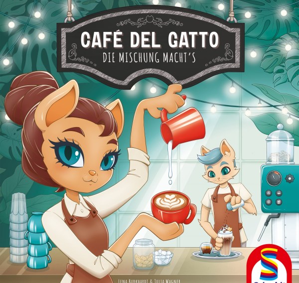 In „Café del Gatto“ schlüpft ihr in die Rolle von Baristas, die ihren KundInnen die cremigsten und schmackhaftesten Kaffeespezialitäten servieren möchten. Jeder Mitspielende hat fünf verschiedene Kaffee-Spezialitäten vor sich liegen (Cappuccino, Espresso, Latte Macchiato…), die es mit Kaffee- und Milchsteinen zu befüllen und zu servieren gilt. Jeweils fünf Steine mit unterschiedlichen Werten (Baristapunkte) und Eigenschaften (heiß, kalt, cremig) liegen hierfür in der Espressomaschine für alle Baristas aus. Wer an der Reihe ist, kann sich einen dieser Steine kaufen, in dem er den aktuell gegenüberliegen Betrag bezahlt. Durch das Herausnehmen und Nachrutschen der Steine ändert sich dieser Wert immer wieder – wobei die frisch nachgelegten Steine ganz oben in der Maschine immer etwas kostspieliger sind. Wer seinen Kaffee fertig befüllt hat, darf ihn servieren und erhält dafür neben den spielentscheidenden Baristapunkten auch zusätzliches Geld, wenn das Getränk möglichst gleiche Eigenschaften hat. Hier gilt es schnell zu sein, denn die hohen Baristapunkte sind limitiert. Wer zu spät kommt, muss auf niedrigere Werte zurückgreifen (oder seinen Kaffee mit Zuckerwürfeln aufpeppen). Das Spiel endet, sobald es einem der Spielenden gelungen ist, alle fünf Sorten zu servieren. Der Wettlauf um die besten Kaffeemischungen ist schnell gelernt, spielt sich flott und entwickelt eine coole Dynamik. Denn jeder einzelne gekaufte Kaffee- und Milchstein beeinflusst durch das Nachrutschen in der Espressomaschine den Preis für die Mitspielenden im Anschluss. Und jede servierte Tasse bedeutet weniger Baristapunkte für den Rest. Es muss ständig überlegt werden, ob man seine Spezialität lieber schnell serviert, und dafür weniger Punkte und Geld erhält, oder langsam ein Meisterwerk brüht, das zwar viele Punkte einbringt, aber am Ende sehr kostspielig wird. Rund 40,- € klingen auf den ersten Blick viel für das taktische Familienspiel, doch das hochwertige Spielmaterial (tolle zweifarbige Acrylsteine!) stimmt milde. Was allerdings die Katzen mit dem Spiel zu tun haben, erschließt sich uns nicht so richtig. Außer auf dem Coverartwork und in kleinen Details tauchen die Tiere im Spiel gar nicht auf. Hier wäre vielleicht an anderes Thema passender gewesen… „Café del Gatto“ hat 2023 den österreichischen Preis: "SPIEL der Spiele 2023" gewonnen.