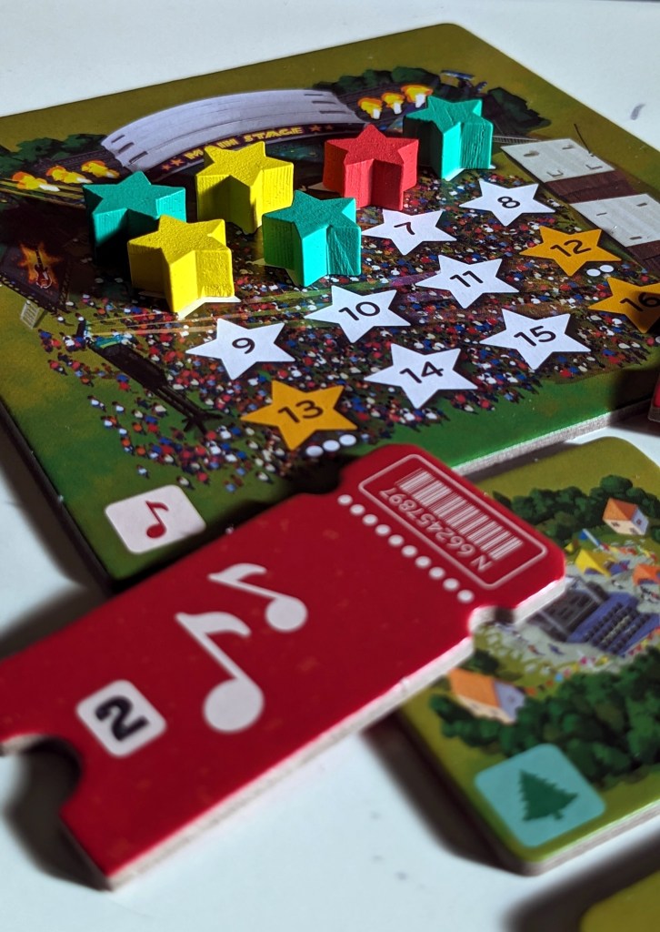 Je nach Menge der vorhandenen Tickets Fans werden dann noch Fans der eigenen Farbe in den Sammelbeutel geworfen. Auf Stadtfeldern darf man hingegen Fans aus dem Beutel ziehen. Zieht man eigene, werden diese auf dem Ziel, der großen Sunshine-Bühne platziert. Wer am Ende am meisten Fans vor dieser Hauptbühne hat, gewinnt das Spiel.