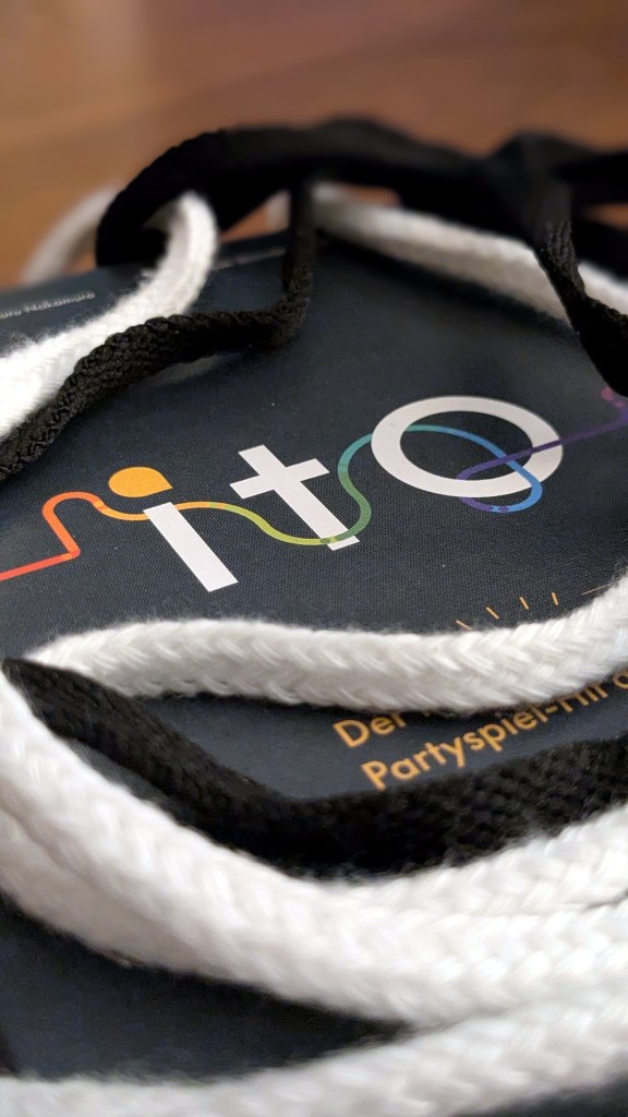 „ito“ (japanisch für Faden) ist ein kooperatives Kartenspiel, in dem alle Mitspielenden Hinweise zu einem bestimmten Thema geben, die zu einer Zahl zwischen 1 und 100 passt, die man gezogen hat.