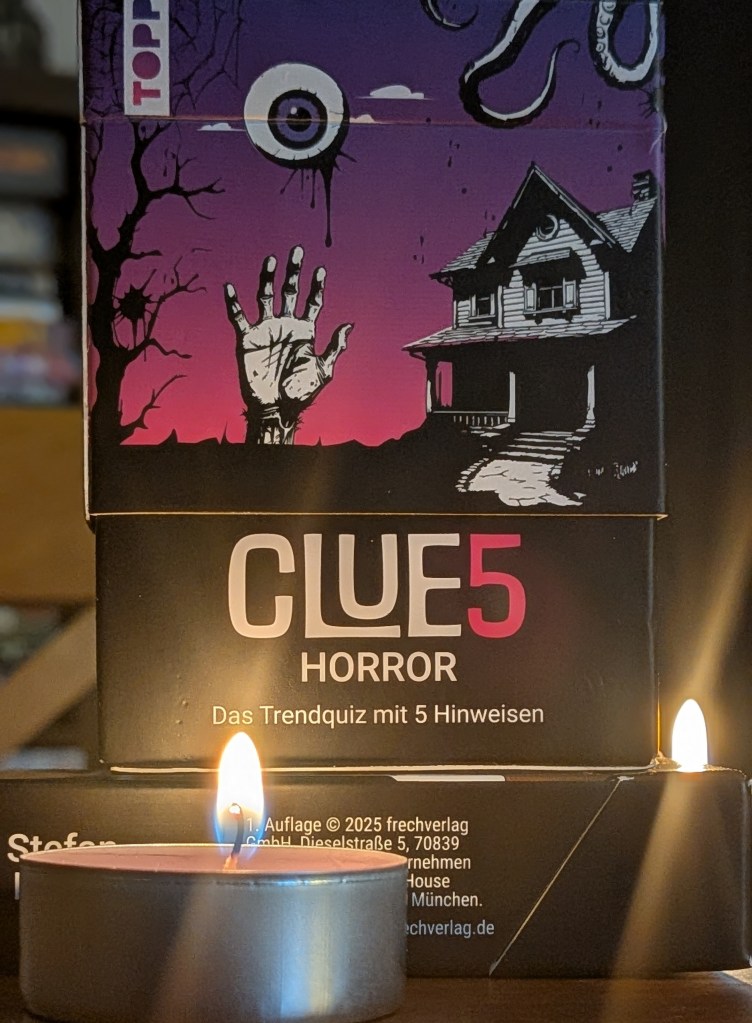 Mit ca. 9,- pro Set ist „Clue 5“ vielleicht zwei/drei Euro zu hoch angesetzt, denn die Halbwertszeit ist logischerweise auf die 50 Fragen begrenzt. Dennoch ist es als kompaktes Quiz-Spiel für unterwegs eindeutig empfehlenswert!