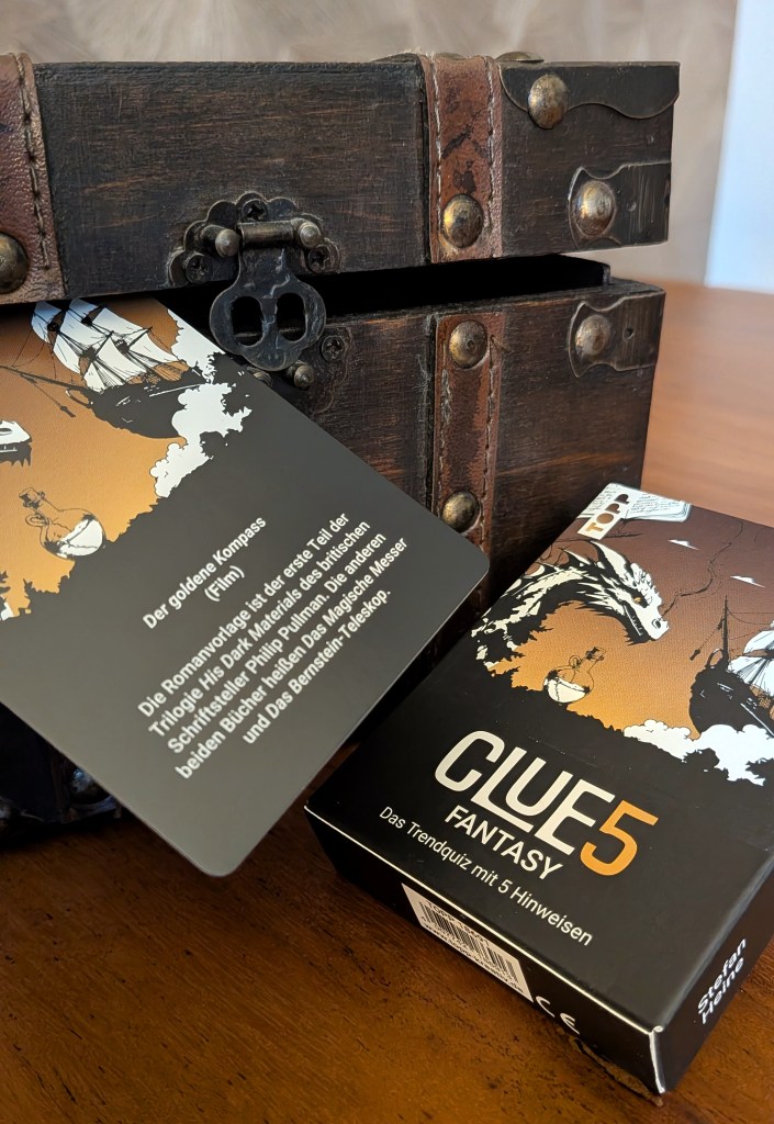 Unter dem Namen „Clue 5“ ist gleich eine ganze Reihe kurzweiliger Quiz-Kartenspiele erhältlich. Es gilt sich also zuerst für eines von 8 Themen (Potterverse, 90er Jahre, Tiere, Horror, Fantasy, Rock & Pop, Fussball, Videospiele) zu entscheiden. Der Rest ist dann ganz einfach: