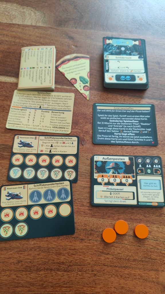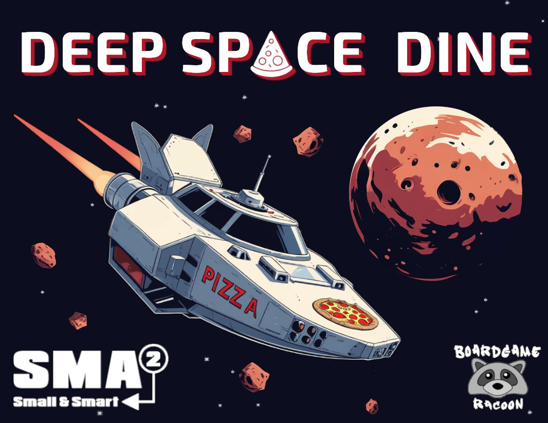 In Deep Space Dine von Boardgame Racoon schlüpft ihr in die Rolle eines intergalaktischen Pizzaboten, der alle möglichen Gefahren abwenden muss. Wichtig dabei ist auch, dass die Pizza auf keinen Fall kalt ankommen darf!